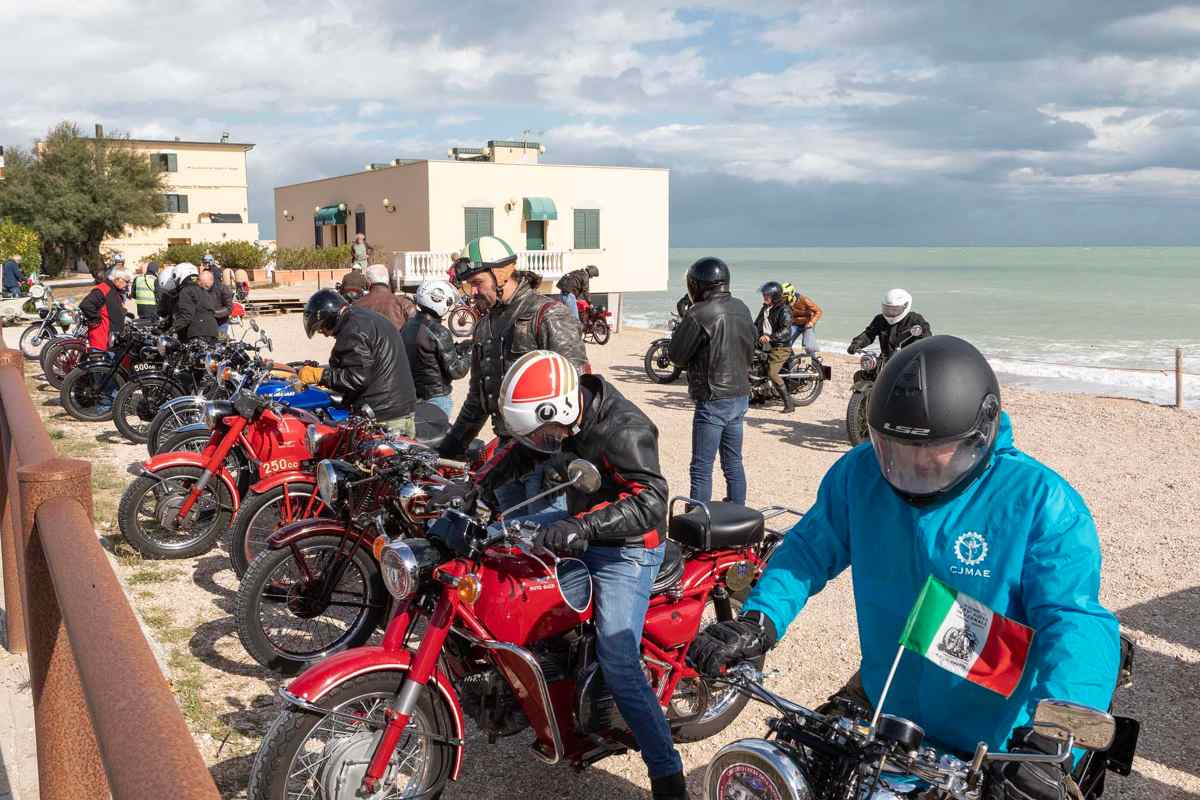 Sono stati gli splendidi itinerari tra Recanati, Porto Recanati e Loreto a segnare il positivo svolgimento della “4^ Rievocazione Storica del Circuito Colle dell’Infinito”, che ha visto 30 motociclisti al via con le loro moto d’epoca. La spettacolare parata di mezzi davanti al Teatro Persiani in centro storico ha aperto una giornata contrassegnata da minacce di maltempo, vento forte, ma fortunatamente assenza di pioggia, condizioni particolari che non hanno minimamente impensierito i “temerari” protagonisti di questi eventi per moto d’epoca. Recanati conobbe nel 1925 la prima edizione del Circuito Motociclistico Colle dell’Infinito, in un periodo nel quale i percorsi cittadini e stradali erano la consuetudine della nascente attività motoristica sportiva. D’altronde è stato proprio l’anno precedente, il 1924, a vedere l’avvio del Circuito del Chienti e Potenza, che ha ispirato l’altro evento motociclistico del CAEM/Lodovico Scarfiotti giunto quest’anno a fine agosto alla sua 29^ puntata. A Recanati, tra raffiche di vento, alla presenza del vicesindaco Roberto Bartomeoli, si sono avviati i partecipanti che hanno percorso prima l’anello delle Mura, che caratterizzò le tre edizioni degli anni Venti, poi si sono diretti verso Porto Recanati, tra le colline, le curve e i saliscendi che caratterizzano il panorama della parte alta del territorio costiero maceratese. Un aperitivo presso lo Chalet Kocònero sul Lungomare Scossicci di Porto Recanati ha preceduto in tarda mattinata il percorso di rientro che ha lambito il territorio di Loreto per poi risalire verso Recanati e Bagnolo per ridiscendere in località Sambucheto per l’incontro finale a tavola tra portate di pesce al Ristorante Principi. Lo staff organizzatore guidato dal presidente Mirko Recanatesi ed il Commissario Delegato ASI Angelo Privitera hanno salutato con calore i motociclisti intervenuti. Al via abbiamo visto Ariel, BSA, Royal Enfield, Sertum, le eterne Moto Guzzi, Mi-Val, Benelli, Matchless, MV, Piaggio Vespa, Innocenti Lambretta, Norton, Honda, Kawasaki, con diversi esemplari anni ‘20 e anni ‘30.