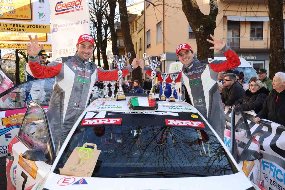 Angelo Pucci, ancora con i colori della Scuderia Malatesta, era al debutto al volante della Skoda Fabia Rally2 nella versione RS curata da Delta Rally, mentre ritrovava le gomme MRF Tyres, quelle con cui lo scorso anno si è tolto importanti soddisfazioni. Un approccio con la nuova vettura affrontato con gradualità ed intelligenza, spingendo in progressione sul pedale del gas quando sentiva crescere la confidenza con la macchina, anche se già dalle prima battute di gara si è inserito nella cinquina di testa.