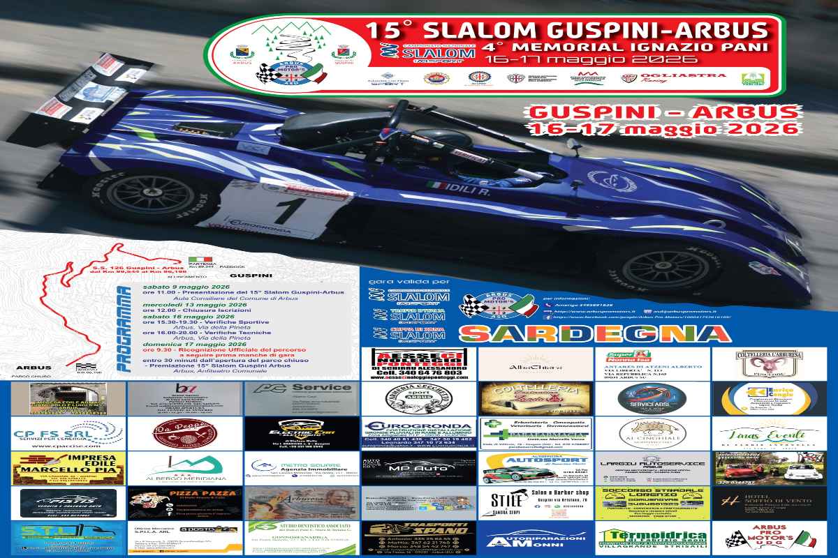 Si aprono oggi, lunedì 20 aprile, le iscrizioni al 15° Slalom Guspini-Arbus, 4° Memorial Ignazio Pani, organizzato dall’Arbus Pro Motor’s.