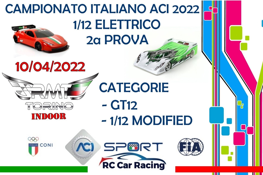 Roma. Si correrà il 10 aprile sulla pista Racing Model Torino (RMT) Indoor la seconda prova del Campionato Italiano RC 1/12 elettrico con le categorie GT12 e a/12 Modified.
