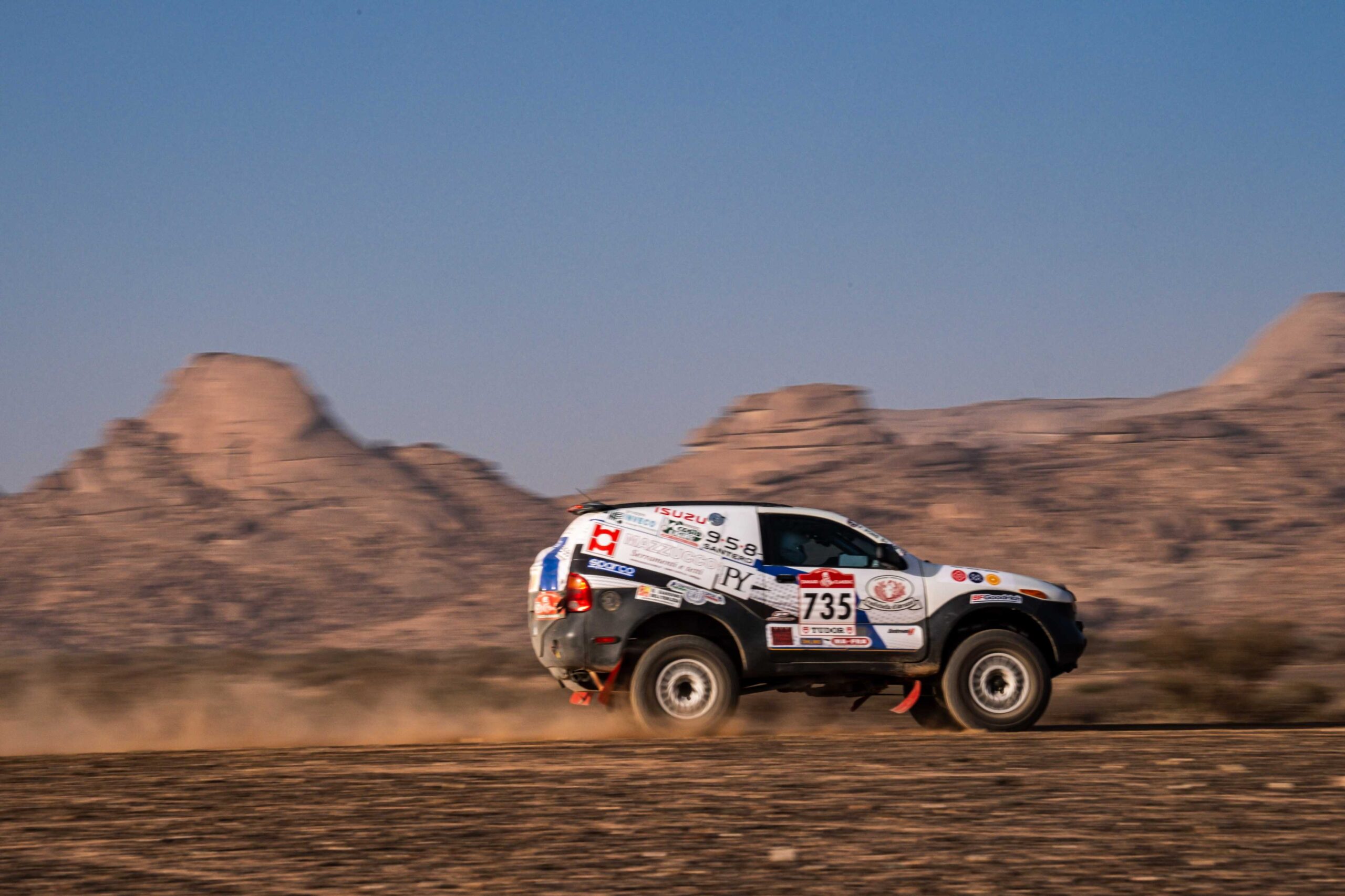 L’Isuzu Vehicross #735 condotto dal pilota ligure e dalla navigatrice piemontese ha affrontato oggi la prima vera tappa della Dakar Classic dopo il prologo di ieri. 385 chilometri totali tra le rocce, pietre e una difficile sezione labirintica intorno al bivacco di Bisha. Quattro prove cronometrate e una di navigazione componevano lo scacchiere agonistico della giornata, con Carcheri e Pons che si sono difesi molto bene ed hanno chiuso al quattordicesimo posto, quinto degli italiani e a sole 11 penalità dalla top ten. Notevole la prova di navigazione, che li ha visti primi ad ex-aequo, e l’ultima cronometrata con l’undicesima prestazione assoluta.