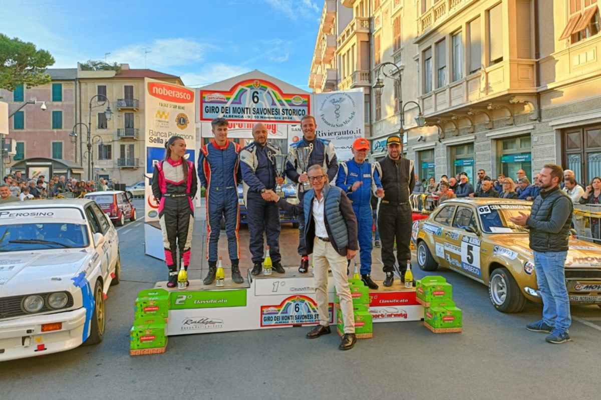 Completato il podio assoluto alla presenza del sindaco di Albenga, Riccardo Tomatis, del presidente del Consiglio Comunale e del Comitato Locale del Turismo Alberto Passino e del presidente di Sport Infinity Domenico Salati dalle cui mani sono state consegnati i premi, sono poi sfilati i restanti equipaggi con Gabriele Noberasco e Maurizio Imerito quarti su BMW M3 a precedere Manuel Demicheli e Paolo Pontari, straordinari quinti assoluti con la piccola Opel Corsa GSI con la quale hanno preceduto la Toyota Celica St165 di Sergio Mano e Stefano Pistoresi, partiti un po’ a rilento il primo giorno ma in costante recupero alla domenica. Settimi hanno chiuso Giovanni Balbis e Graziano Floccia su Lancia Delta Integrale 16V, ottavi Franco Volpino e Simona Albesano anch’essi su BMW M3, noni Federico Del Rosso e Aldo Gentile e, a completare la top-ten, sono Filippo Virdis e Nicole Arione su Peugeot 309 GTI. Nella classifica femminile alla quale hanno concorso tre equipaggi, il successo è andato a Laura Galliano e Laura Cragnaz su Peugeot 205 Rally, mentre tra le scuderie a festeggiare è la Meteco Corse. Claudio Azzari e Lorenzo Chiodi hanno primeggiato nel 3° Raggruppamento del Michelin Trofeo Storico e nel 2° hanno avuto la meglio Ermanno Caporale ed Hervè Navillod. Infine, nella Coppa 127 a vincere sono stati Valtero Gandolfo e Marco Torterolo. Sempre in tema di riconoscimenti, ai premi speciali già assegnati alla coppia vincitrice se n’è aggiunto un terzo, il Memorial Dario Fadini col quale è stato premiato il più giovane licenziato dell’Automobile Club del Ponente Ligure, il ventiduenne Andrea Tognetti.