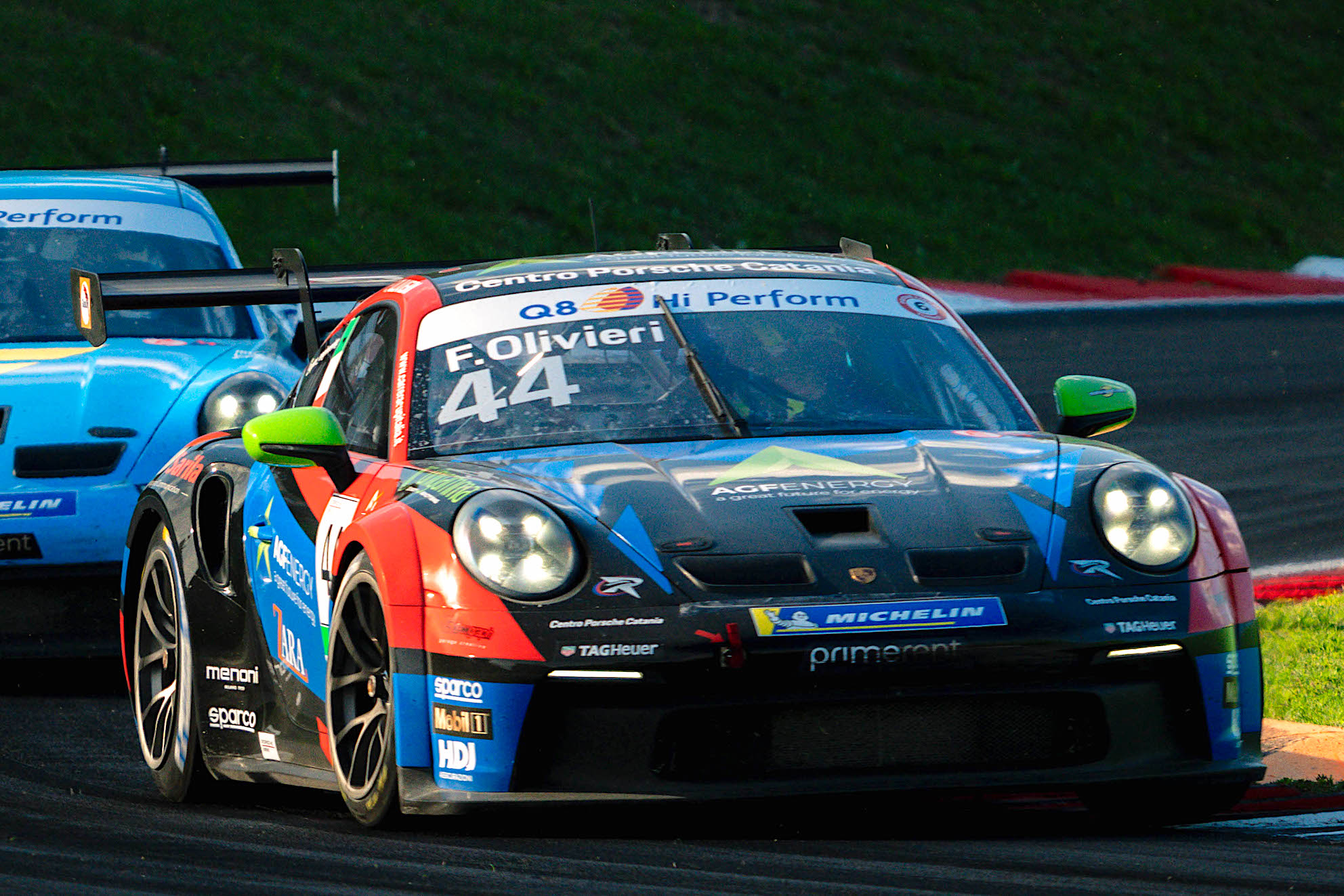 Impegnato in questa cruciale fase finale della sua prima stagione in Porsche, il giovanissimo Olivieri ha invece ottenuto il meglio in gara 1, quando è tornato in zona punti guadagnando una posizione, mentre in gara 2, impegnato in una lotta con un avversario diretto, è stato costretto allo stop in conseguenza di un contatto. Il rookie romano aveva mostrato un ottimo piglio competitivo in prova, quando sabato mattina è stato in grado di inserirsi in bagarre con diversi piloti ben più esperti e già vincenti in Carrera Cup.