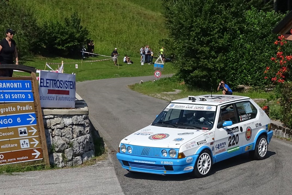 Per Daniele Danieli e Cristina Merco in gara con la Fiat Ritmo 130 TC Gruppo A, invece, il prologo del venerdì era iniziato davvero bene e dopo le prime tre prove erano decimi assoluti e in testa alla classe; l’indomani pagano però una scelta non azzeccata delle gomme che fa perder loro delle posizioni chiudendo terzi di classe e quattordicesimi nella generale.